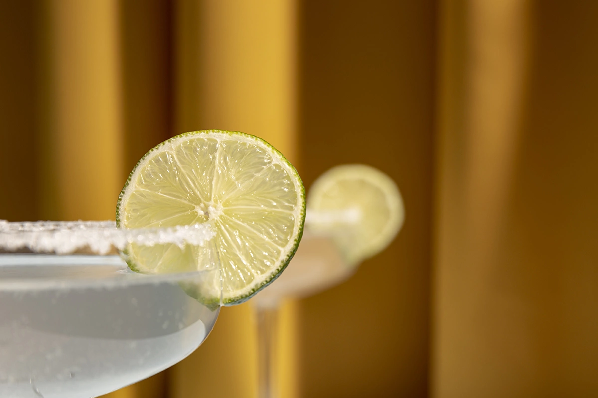 Коктейль обычно подается в специальном бокале, напоминающем креманку, но версия on the rocks может сервироваться в тумблере. Сначала надо приготовить бокал: смочить край долькой лимона и опустить в соль.